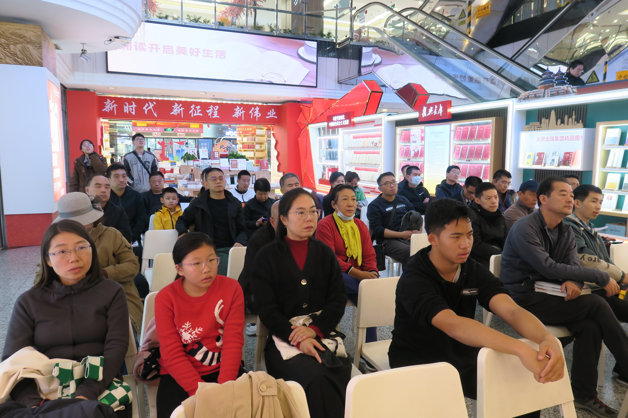 北京图书大厦顾客看到讲座驻足而听