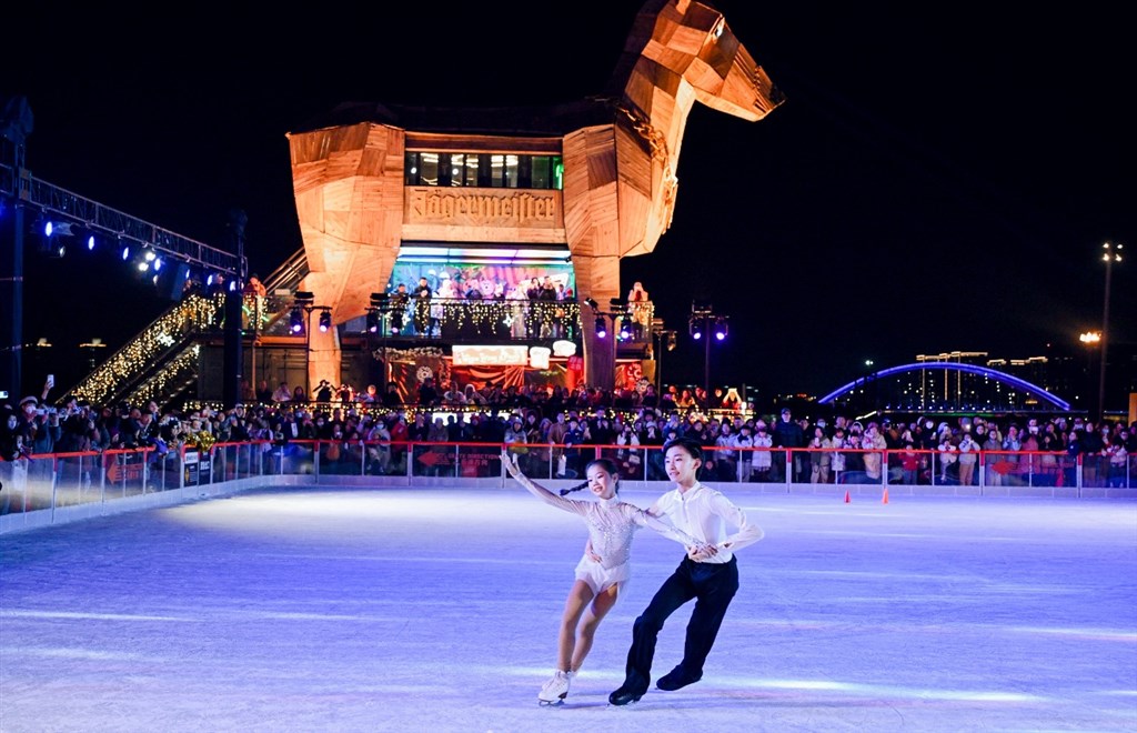 沪上最大水岸冰场,收获北国冰雪乐趣 这个冬季,梦中心还与乐滑之梦联手打造了上海首个户外水岸冰场。这座冰场面朝黄浦江,拥有超千平的广阔空间,吸引了众多消费者前来体验冰雪乐趣。高达16米的野格巨鹿装置也摇身一变成为冰场精灵,为整个空间注入了奇幻的氛围。 据悉,这座水岸冰场自12月14日开业以来便人气爆棚。跨年夜当晚,更有冠军滑手呈现精彩演出。喷雪场景、绚丽灯光和好玩的滑冰在首周更是吸引了日均超千位消费者心动入场。此番热潮不仅让市民游客感受了足不出“沪”的冰雪体验,更强劲地带动梦中心的周末客流量突破了6万人次。冰场将持续开放至2025月2月28日。