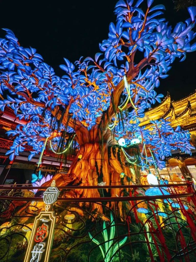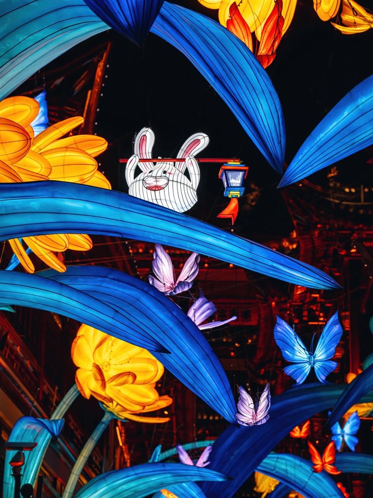 关照每个平凡人,30年豫园灯会汇聚微光照亮山海 在新年之际,豫园灯会的四大穿越之门开启。从二号门“莽浮秘境,生命之门”进入的游人们,可随豫园灯会推荐路线步入黄金广场。广场中心生长着一颗生命之树,作为丛林中的长者,它见证并记录了整个丛林的生机与繁茂。 凝晖路今年依然是豫园灯会“最热打卡点”之一。茂密藤蔓环绕,无数色彩斑斓的蝴蝶自谷底向天空聚集,翩翩起舞,形成炫彩夺目的蝴蝶花海,从凝晖路一路走来,乘蝶以游,模糊了人与蝴蝶的界限,营造出“逍遥物外,庄周梦蝶”的梦境,达到“人在灯里游”的感受。
