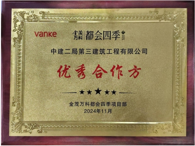 近日,中建二局三公司华南分公司金茂万科都会四季项目先后收获了业主颁发的优秀合作方奖牌和表扬信,对金茂万科都会四季项目部在过去一年里科学管理、全力以赴、积极履约取得的优秀成绩表示赞许。