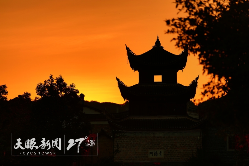 锦屏隆里古城古朴沧桑, 晚霞点缀,天空美不胜收。杨林森 摄(贵州图片库 发)