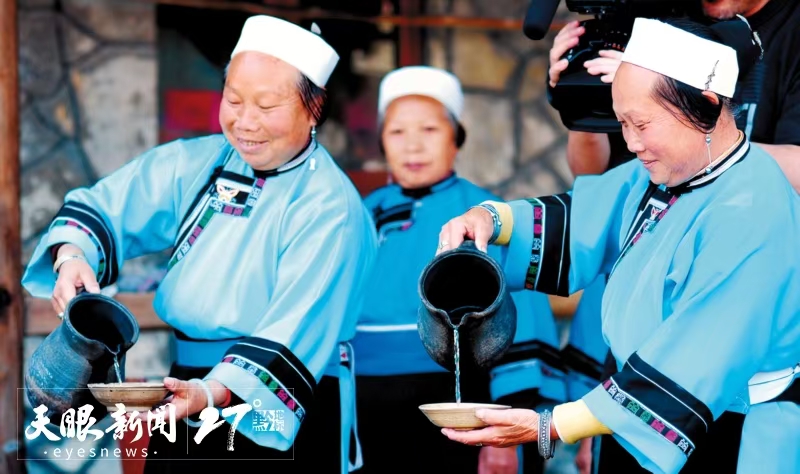 随着岁月变迁,屯堡美食以自身饮食特色,逐渐影响了省内其他地区的烹饪方式,成为贵州饮食文化的重要组成部分。图为屯堡孃孃泡制茶饮。(安顺市委宣传部供图)