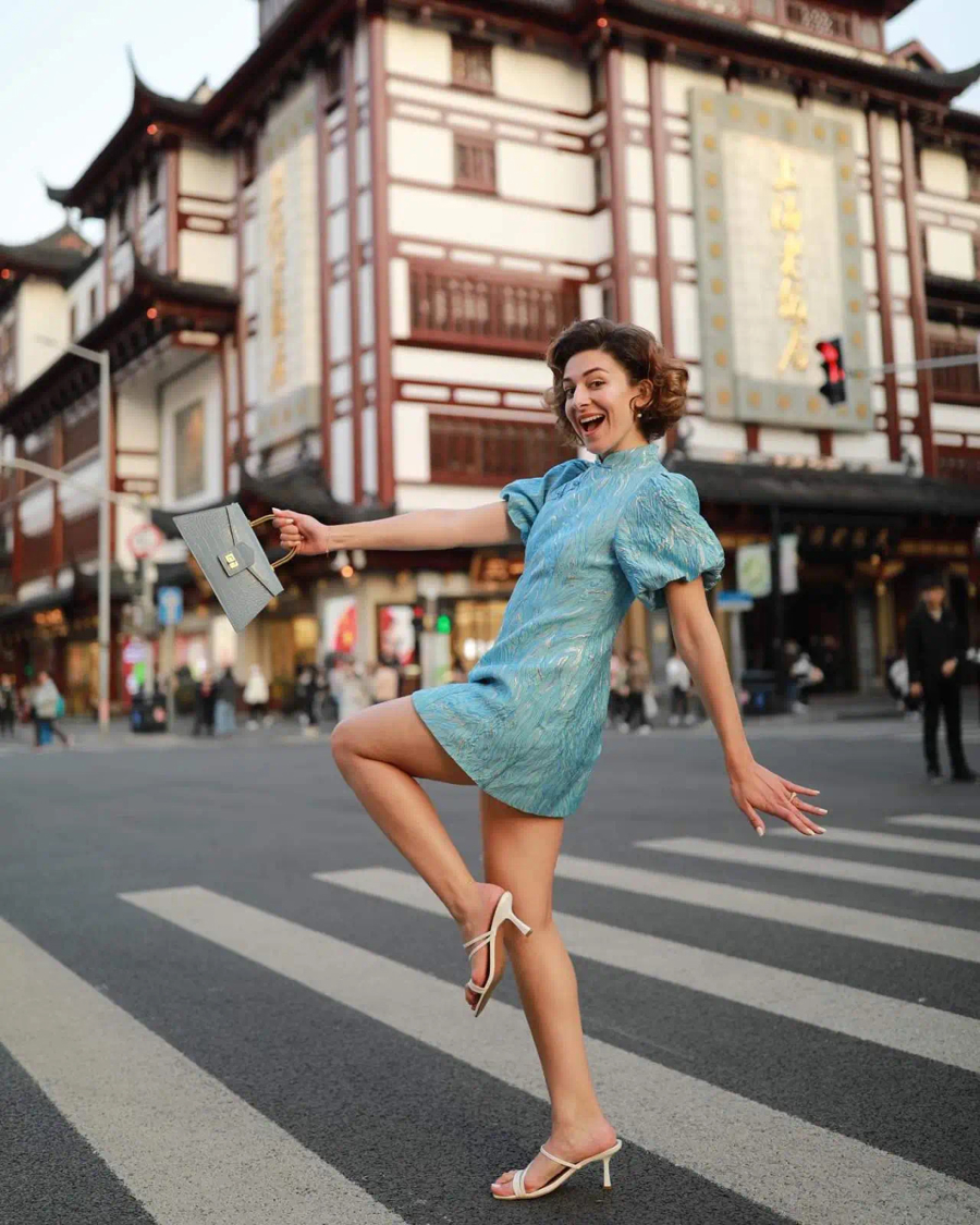 爱黎在上海生活了5年,早已把这座城市当成第二个家。她会穿着改良旗袍去豫园Citywalk,去雁荡路的中原美发厅找老师傅做复古卷发,在春节到来前自己动手写春联,祝大家“新年快乐”“万事如意”。“这座国际大都市与世界那么近,而属于中国独有的气息又那么浓郁,我深深爱上了这里。”