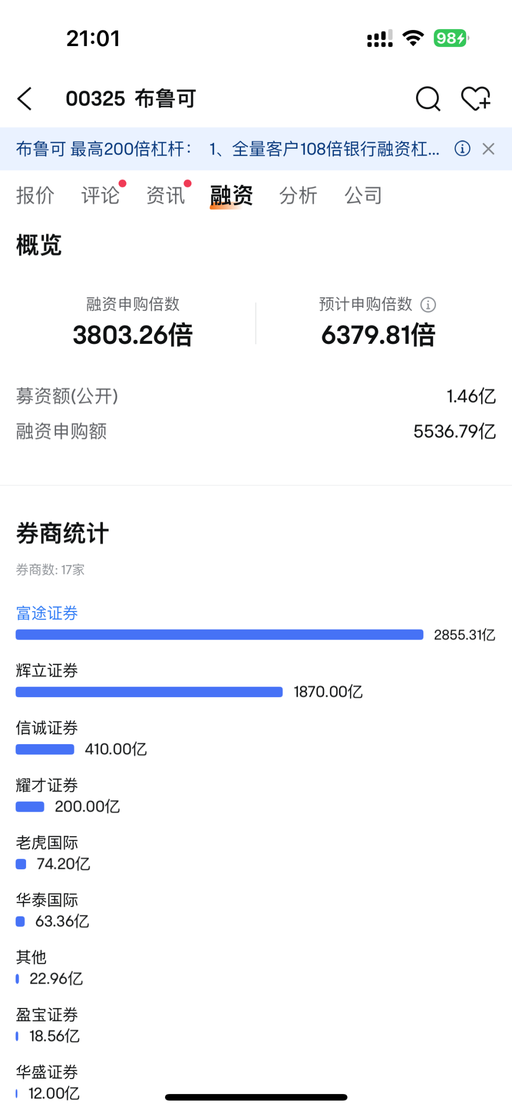 自2024年12月31日开启招股后,布鲁可广受投资者追捧。截至1月2日21时,布鲁可录得超5536.79亿港元孖展(注:融资融券)认购,较公开发售集资1.46亿港元的目标,超额认购超3803.26倍。