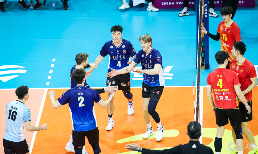 上海光明男排主场3:1力克山东松山小镇男排