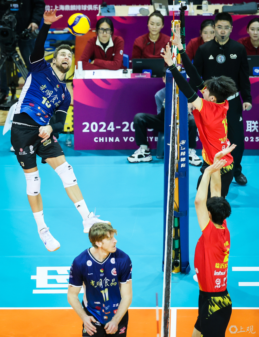 在2025年1月2日进行的2024-2025中国男排超级联赛A级季后赛第一阶段第16轮比赛中,卫冕冠军上海光明男排在主场卢湾体育馆迎战山东松山小镇男排。