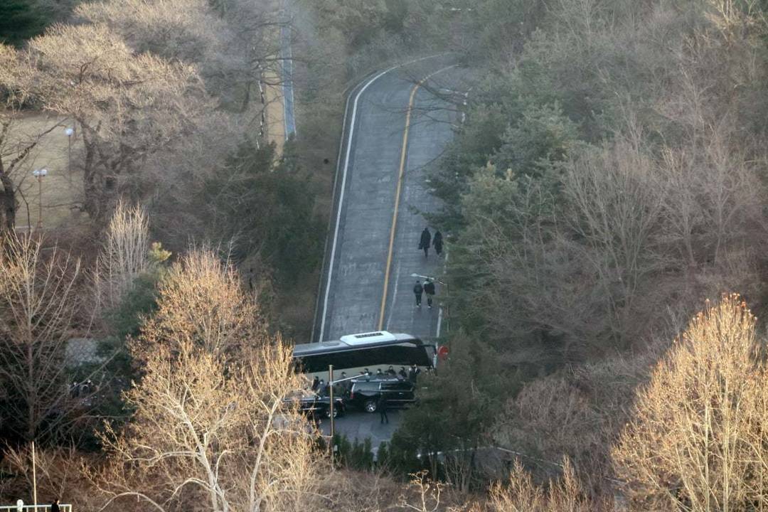 1月3日早晨,韩国高级公职人员犯罪调查处(公调处)调查人员乘车抵达总统官邸前,开始执行逮捕令。