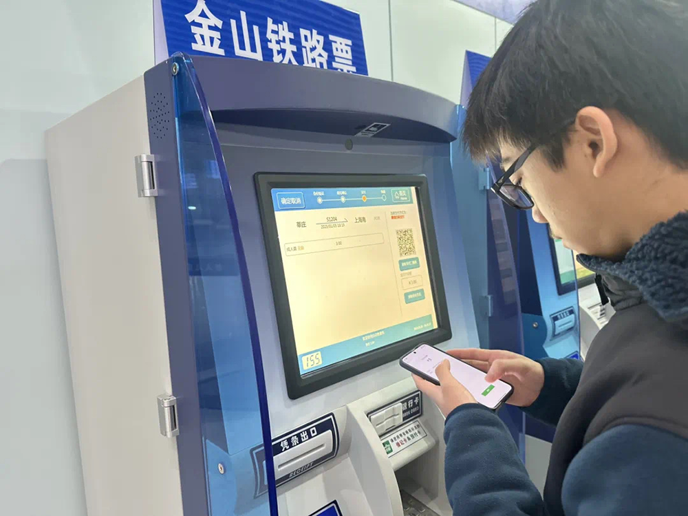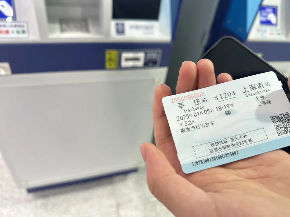 家住上海莘庄附近的黄先生特意来尝鲜,是在铁路莘庄站现场第一位买票的乘客。