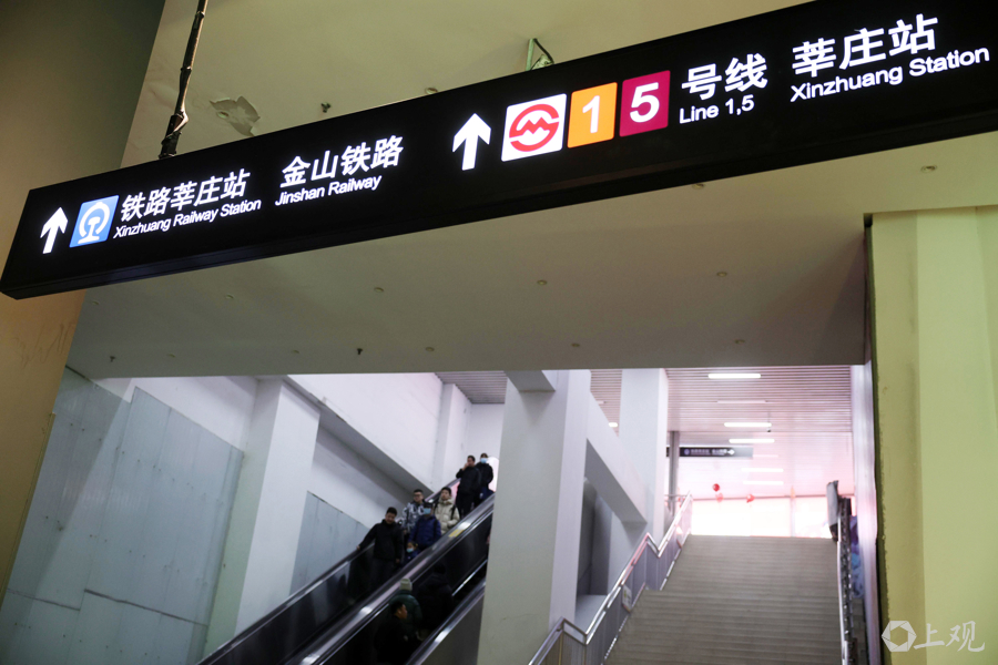 莘庄交通枢纽客流量大,金山铁路列车、公交车、地铁相互换乘便捷,指示明晰。