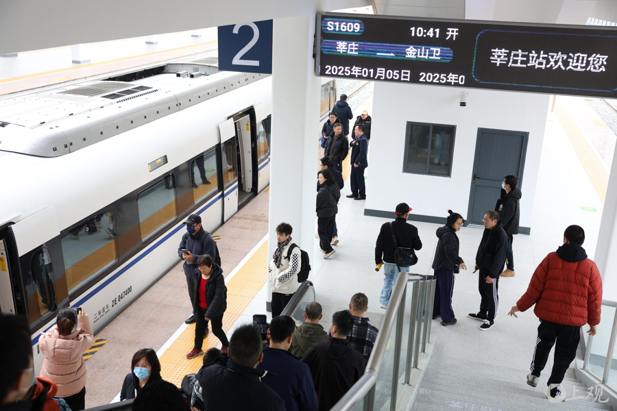 2025年1月5日7点57分,S1601次列车从莘庄站开出,驶往金山卫站。这是新建的莘庄站承办金山铁路客运业务后始发的首趟列车,虽然是周末,还是有不少乘客前来“尝鲜”。