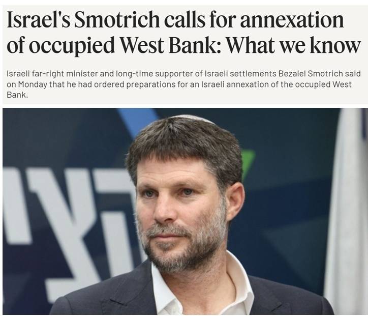 特朗普胜选后几天,以财政部长、极右翼政治人士斯莫特里赫11月11日公开宣称,他希望“以色列在2025年能将主权扩展到约旦河西岸地区”。巴勒斯坦外交部对此言论予以谴责。巴方表示,此类言论是典型的殖民主义,无视国际法以及“两国方案”的国际共识。