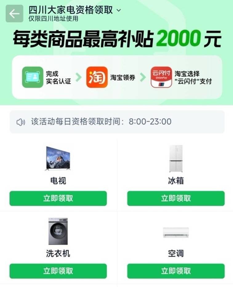 2025领国补购物体验再升级。1月8日,记者了解到天猫与银联达成合作,接入云闪付,在淘宝App内即可直接领取云闪付政府补贴,简化消费者领取步骤。