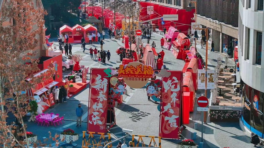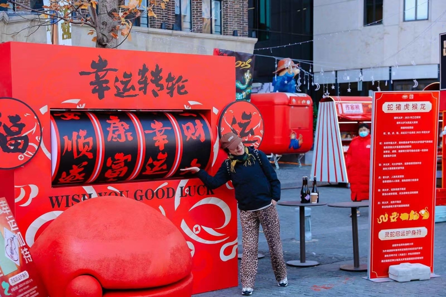 在熏风乐社带来的新国风民乐演奏中,盛大的新年集市在外滩源拉开帷幕。以中国蛇文化为灵魂,结合传统文化IP,一股浓郁的新春气息扑面而来。