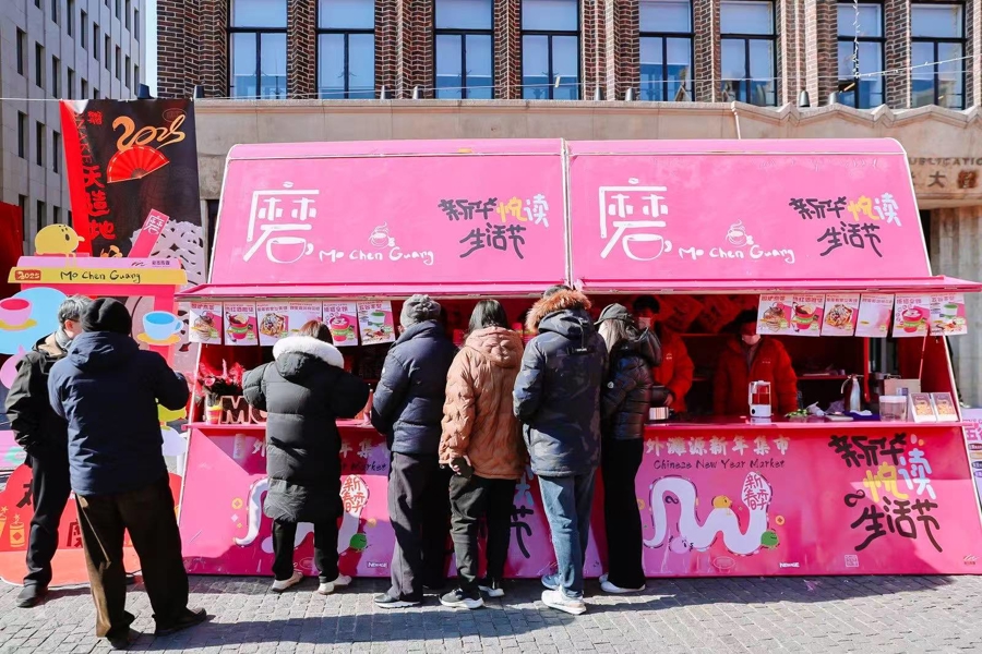 以“磨辰光”为主题的摆摊活动,带有蛇年新春元素的精美台卡、创意桌牌等装点其间,营造节日氛围。“新年第一杯”“五谷丰登”“新年祈福特调”等主题菜单,让人享受美味的同时也收获祝福。