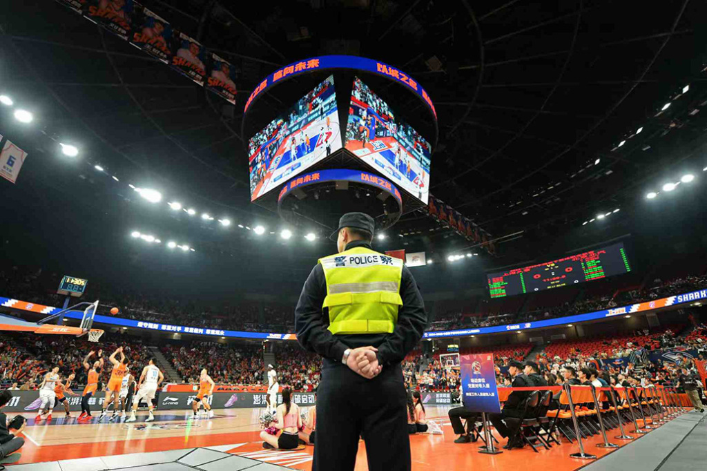 徐汇公安分局民警在“中国男子篮球职业联赛”开展安保工作。
