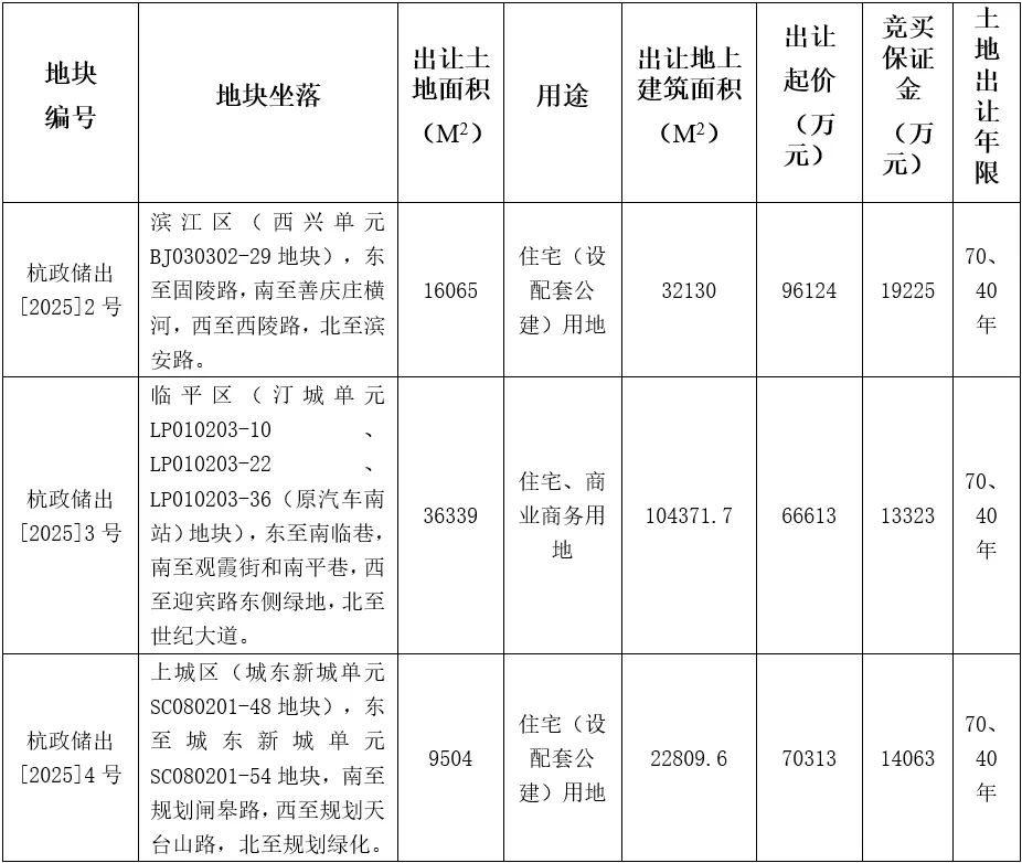 杭州3宗宅地挂牌起始价23.305亿元:安琪儿市场地块再上新