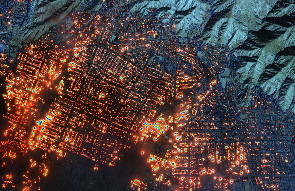 △卫星图像显示,伊顿山火几乎烧毁了阿尔塔迪纳西部所有建筑。(图片来自CNN)