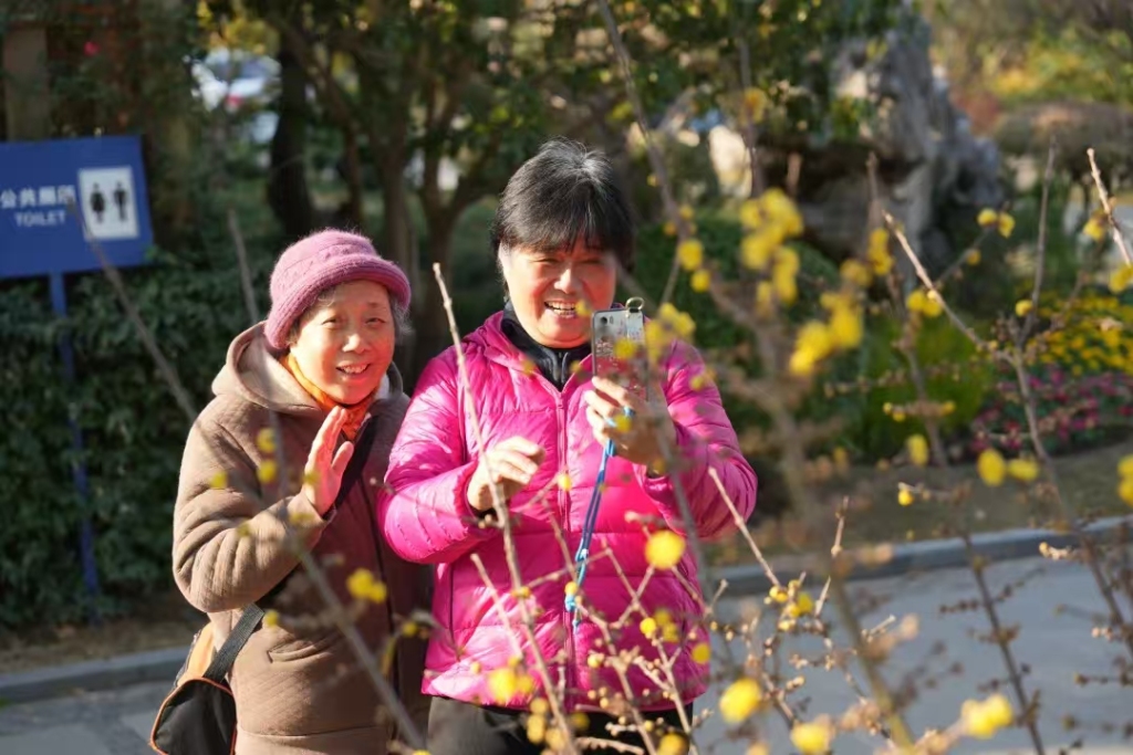 游客在真如公园拍摄蜡梅。上海普陀 图