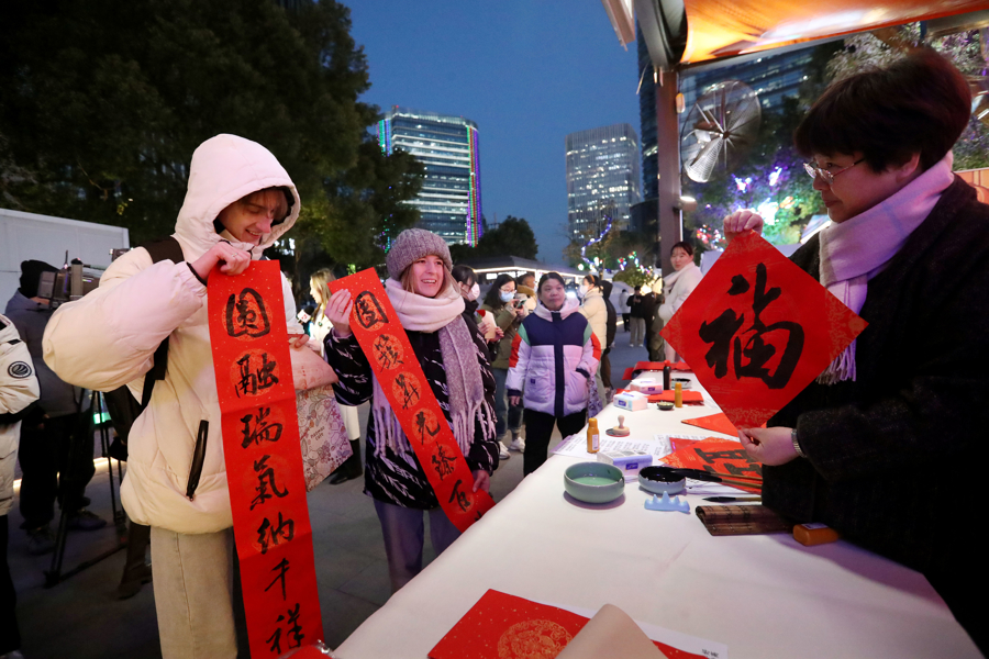 留学生们在体验赏花灯、逛年集等节日民俗的过程中,也感受到中国春节深厚的文化底蕴。一位来自上海外国语大学的留学生拿着春联十分开心,她说:“非常喜欢中国浓浓的年味。”随着春节成功列入联合国教科文组织人类非物质文化遗产代表作名录,越来越多的中国传统文化瑰宝正在成为世界人民普遍接受、认同和欣赏的文化符号。