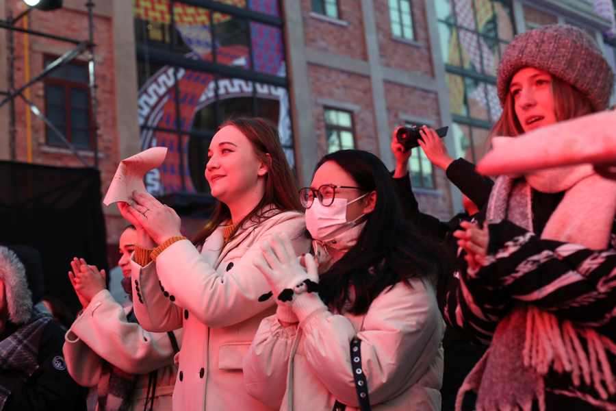 “话蛇添福心欢畅,虹口携手迎吉祥。文体商旅齐联动,共谱蛇年新华章……”来自尼日利亚的小伙李昊瑞“秀”了一段快板表演《双唱绕口令》,表达对于中国传统文化的喜爱。