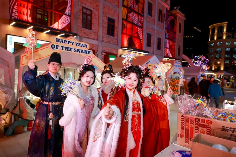 今潮8弄,历史韵味与现代气息交融。在这片新旧共鸣的百年弄堂里,以中西方神话为灵感的“蛇乎其神”海上灯会亮灯,为全球文明交流互鉴提供舞台;演绎中国动画新风的海派动画展焕新亮相,“超时空还原”经典记忆;传递缤纷年味的新春游园会,带来写春联、制漆灯、嬉鱼灯等一系列年俗体验……