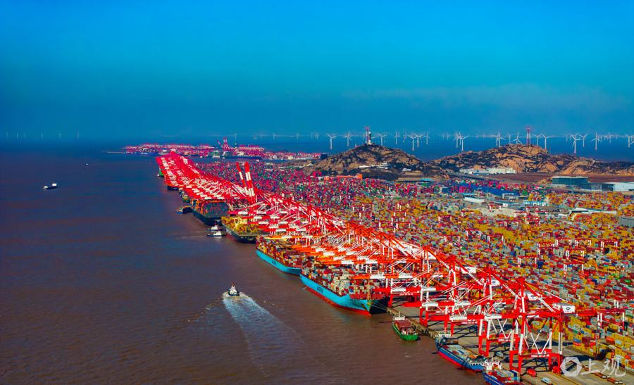 新年伊始,上海洋山港一片繁忙