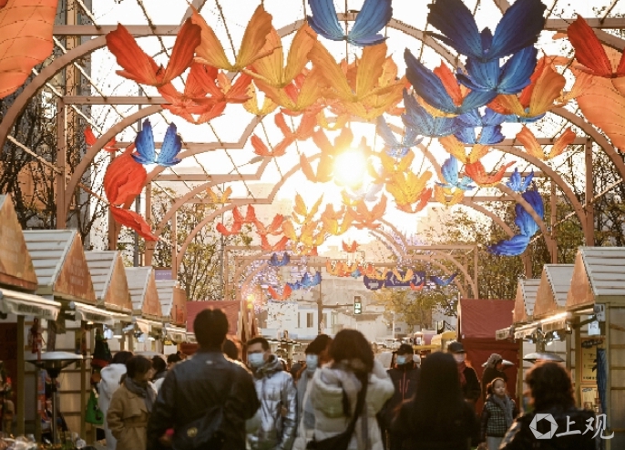 哈利·波特的世界精彩纷呈,东方浪漫故事同样值得回味。新春期间,豫园凝晖路同款蝴蝶花灯“庄周梦蝶”亮相BFC,串联起大豫园的耀眼星河。枫泾路上,彩蝶翩跹,织就一幅炫彩夺目的花海画卷。灯彩起点,巨型彩蝶翩然展翅,引领蝶群共舞天际,奔赴未来的美妙诗篇。新年之际,豫园灯会的丛林奇境与BFC的冬日魔法奇境交织成一幅唯美图景,为市民游客献上一场融合东西方文化的节日盛宴。