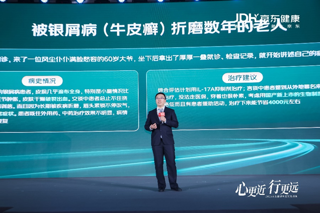 除了医疗服务能力的创新拓展,京东健康也在持续深耕皮肤、心理服务与中医等互联网医疗专科体系建设,并借助医药供应链优势,让更专业的医药健康产品和服务触手可及。会上,来自复旦大学附属华山医院皮肤科医生王上上就分享了从京东互联网医院开出银屑病新药的线上处方,帮助用户实现了线上复诊开方、药品订购和配送到家的一站式体验,大大提升了银屑病患者用药的可及性和便利性。