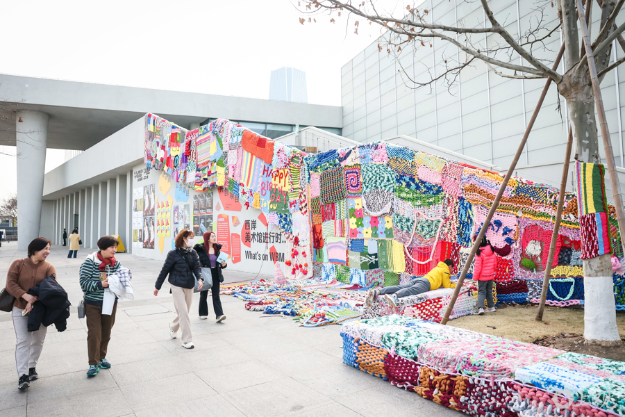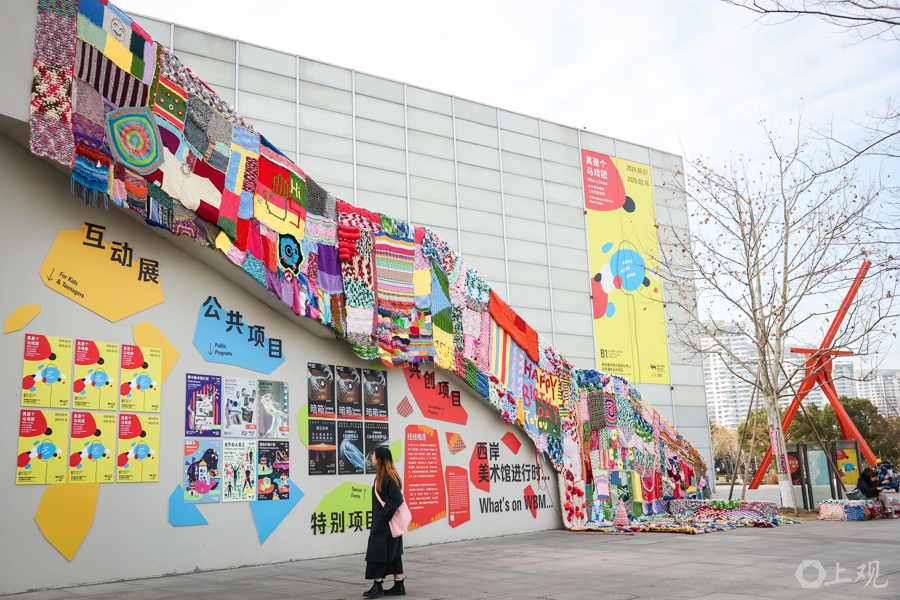 在上海徐汇滨江的西岸美术馆,大型编织公共项目“线线相连”正在温暖呈现。