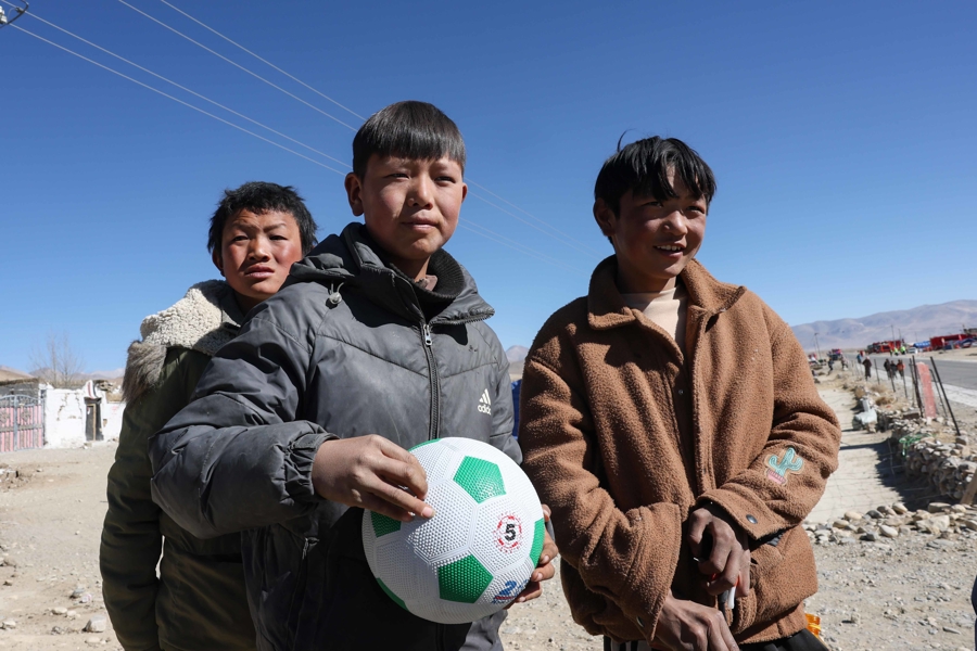 此前,上海第十批援藏干部 、定日县教育局副局长、定日县第二初级中学校长汪海鲸,在13日晚定日群众经历多次严重余震之后来到措昂村看望孩子们,听说初二学生强巴在村子里组建了一只“牦牛”足球队,汪海鲸特地送来足球祝贺他。