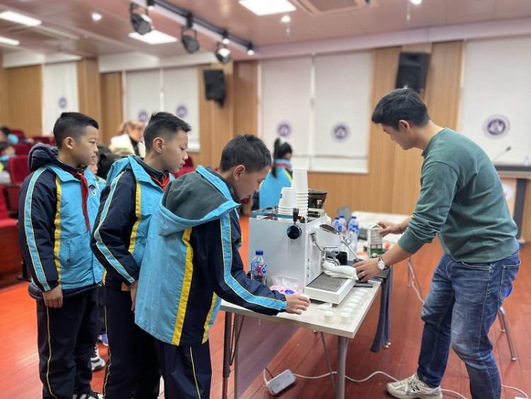 四(1)班曹紫怡爸爸带领同学们走进咖啡的世界,了解咖啡的历史、种类和制作方法,感受咖啡文化的独特魅力。同学们还亲手制作了一杯属于自己的特制饮品。
