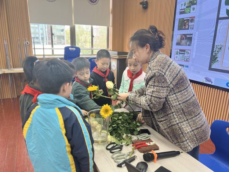 四(2)班李允之妈妈带领同学们一起走进花的世界,不仅教会大家如何识别各种美丽的花材,还亲自示范如何养护这些娇贵的生命,让同学们在动手实践中感受大自然的魅力。