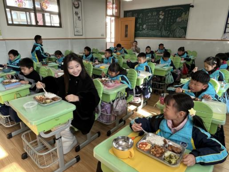 中午时分,家委会成员们走进了各班教室,与孩子们一同品尝了学校精心准备的AB制餐食。经典美味的传统菜肴,每一口都蕴含着学校对孩子们饮食健康的细心考量。家长们陪同孩子们共进午餐,对餐食的多样性和营养均衡给予了高度评价。