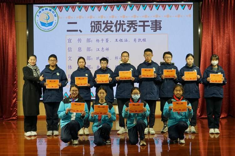 表彰环节,对表现突出的个人和部门进行了表彰。优秀干事们因思想进步、学习态度良好、工作主动负责而获得了表彰。他们站在台上,脸上洋溢着自豪与喜悦,接受了王晶老师颁发的荣誉证书。