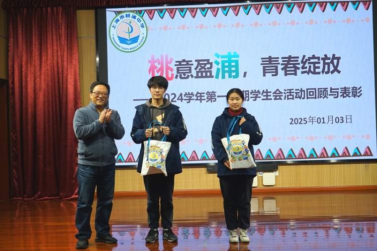 (通讯员 陈婕)2025年1月3日,桃浦中学在厚德剧场内举办了主题为“桃意盈浦,青春绽放”的2024学年第一学期学生会活动回顾与表彰大会。此次大会旨在总结学生会过去一学期的工作成果,表彰在各项工作中表现突出的同学和部门,同时激励全校学生继续秉承“厚德明志,博学笃行”的校训精神,为学校的蓬勃发展注入青春活力。