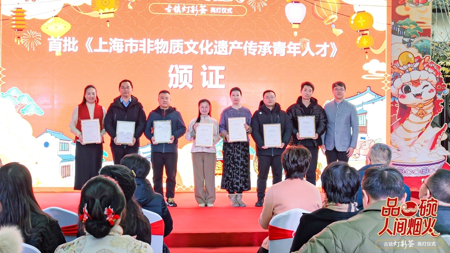 首批经市文化旅游局认定的32位上海市非遗青年人才齐聚古镇参加颁证仪式。他们均是在非遗领域内,具备相关知识、技能、市场推广和创新能力的佼佼者。