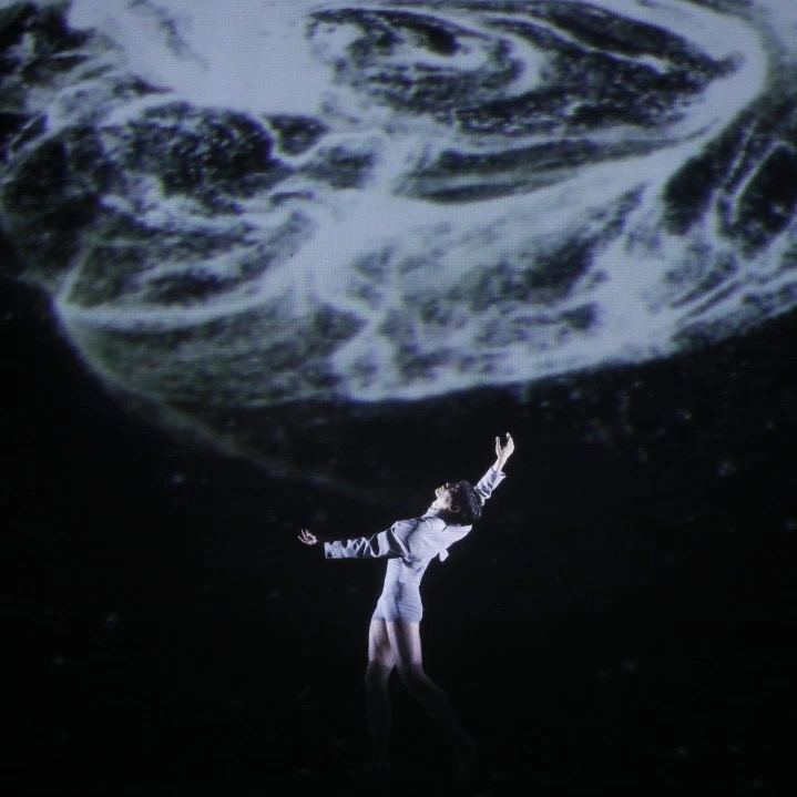梦中的这团云在他看来就像是宇宙里的某种元素,而现实中,“她”是AI交互的产物。由上海歌舞团联合上海交通大学倪冰冰教授团队、新媒体视觉剧场戴炜团队共同打造的“她”,利用人工智能进行动作提取并生成数字人特效的算法,通过精准的动作捕捉和深度学习技术,实现虚拟与现实之间的实时互动。