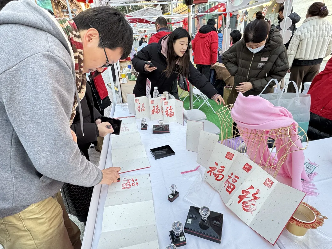 集市上浓烈的喜庆氛围吸引了不少外地甚至外国游客前来“打卡”体验,大家纷纷驻足合影。