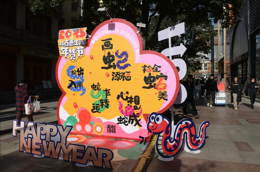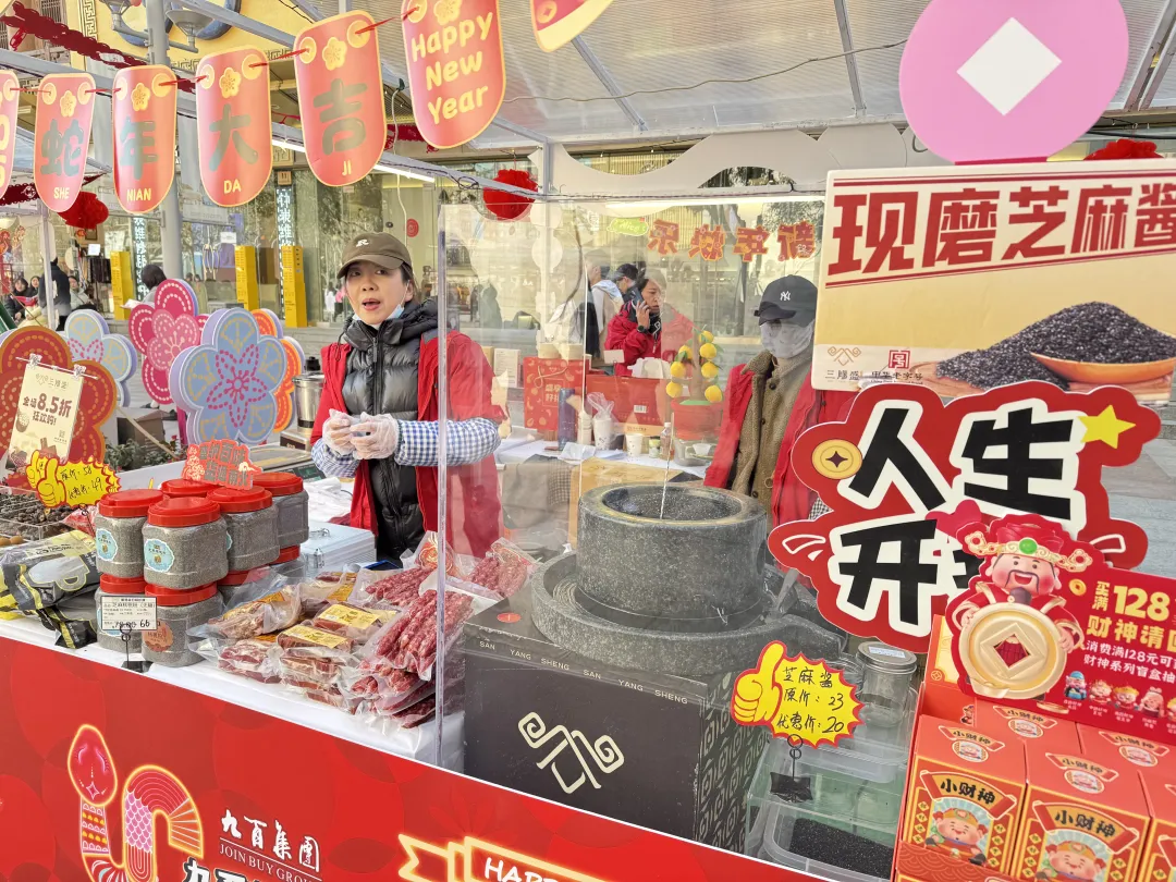1月17日,南京西路商圈的久光百货步行街人气非凡,九百集团联合久光百货带来一场年味十足的年货嘉年华。从年菜、年礼、干货、点心到蛇年限定新品,持续3天惊爆价,消费者可一站式购齐年货。
