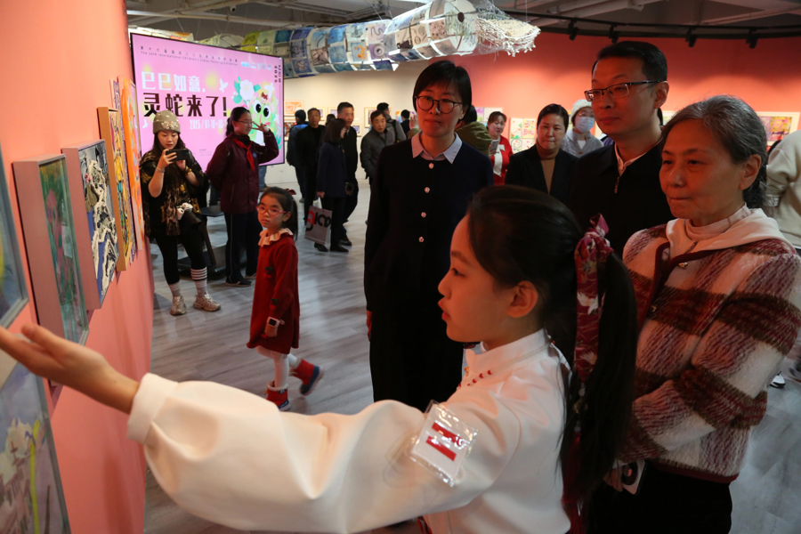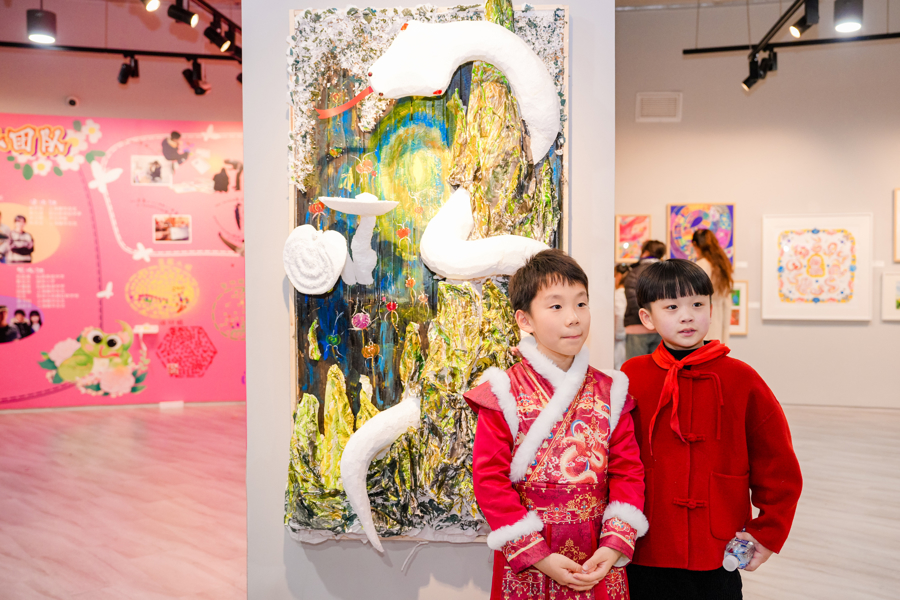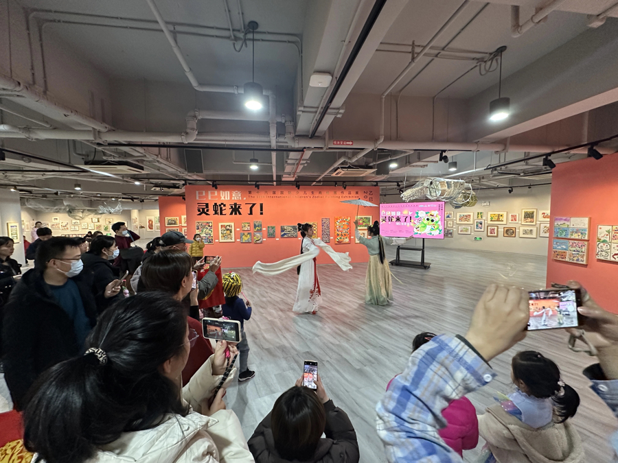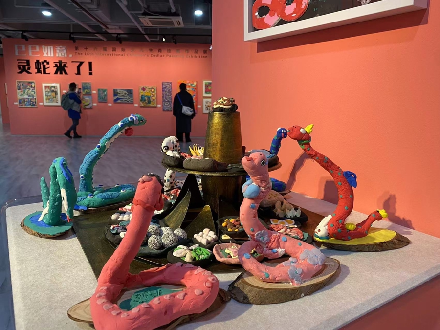 以2025年的生肖“蛇”为创作主题的“巳巳如意,灵蛇来了!第十六届国际少儿生肖绘画作品展”正式开幕。