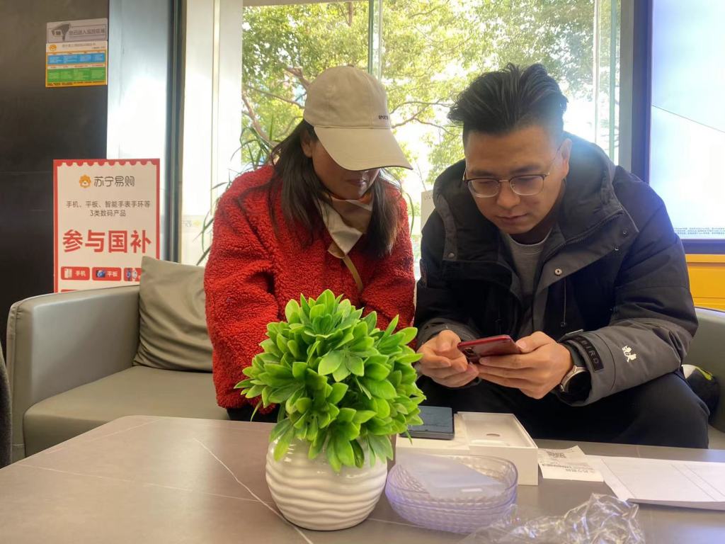 1月20日,苏宁易购五角场店,手机平板首次纳入“国补”后,顾客在现场购买。澎湃新闻记者 邹娟 图