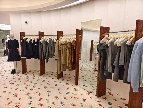 SHUSHU/TONG首家概念旗舰店于2022年入驻上海锦沧文华广场二层,产品始终追求独立设计。Aiki认为,这家店之所以火,首先因为品牌的调性充满少女感,面向的消费群体比较年轻态,很符合韩国客人的消费喜好。其次,一直以来,该品牌在韩国都有很多市场推广,“当下比较火的明星艺人都有穿我们品牌的衣服,也经常会有韩国网红博主会来店里打卡,本土曝光率一直很高,很多韩国当地的潮流年轻人都知道SHUSHU/TONG,她们来旅游就把我们店作为必来打卡地”。Aiki说,另外还有一个原因,是这次免签的时机正好是品牌秋冬季末折扣期间,进一步刺激了消费欲望。