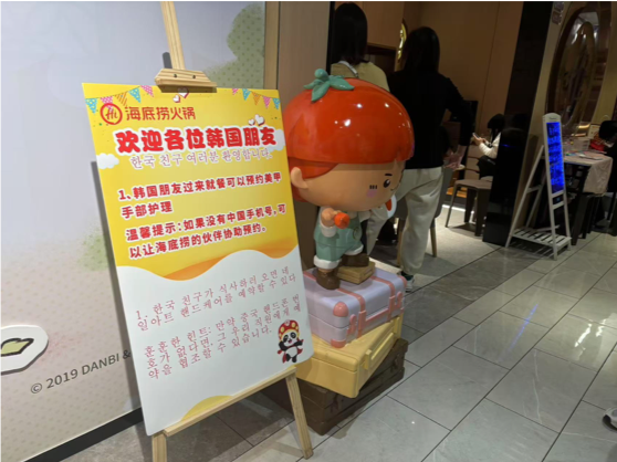 “以前基本没有太多韩国游客来吃,今年1月份开始,韩国顾客的占比接近15%左右,尤其在夜宵场,所以我们也增加了韩语菜单。”第一百货商店海底捞店经理穆化飞告诉记者,近期已经把营业时间延长至次日凌晨7点,也就是通宵。每当到了夜里店门口都会排起长队,店里也为韩国的游客准备了他们喜欢的冰饮。