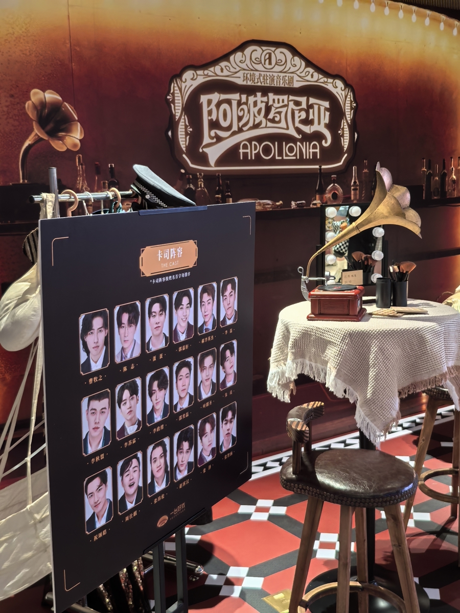 环境式驻演音乐剧《阿波罗尼亚》其实是一部“小戏”,只有三位演员,一场演出只能容纳114位观众。但自2020年在亚洲大厦首演至今,演出已超过1000场,平均上座率达95%。影响力不断叠加,紧随其后推出的兄弟篇《桑塔露琪亚》延续了热度,迄今上演了800多场。两部音乐剧是许多音乐剧观众来沪“必看剧目”,跨城追剧的外地观众占比约20%。
