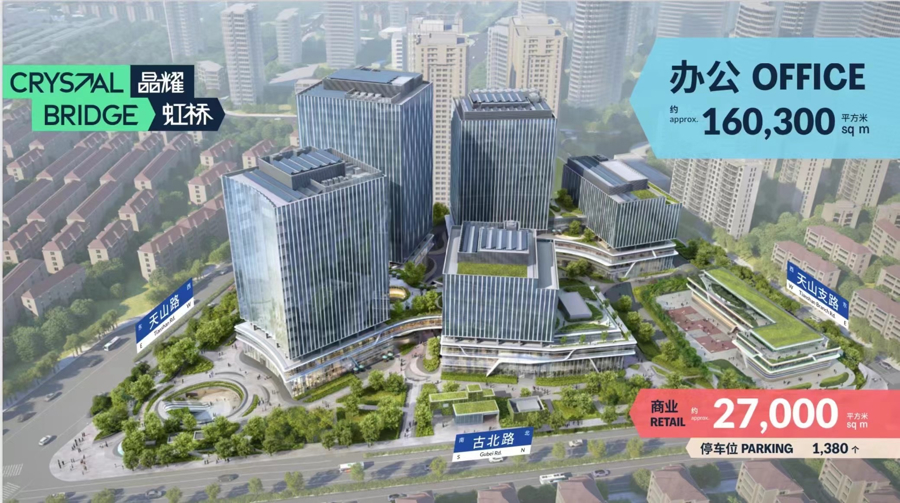 晶耀虹桥项目投资额超过80亿元,总建筑面积近25万平方米,是长宁区“十四五”期间的重点商办载体项目,由知名地产开发商、业主、运营商和资产管理企业铁狮门公司联合新长宁集团、三菱地所合作开发。