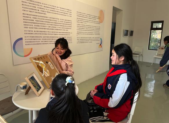 接档举办的“艺术家庭营造计划”现场导览活动,则进一步带动社区美术馆与上海市民办锦秋学校的馆校合作。馆内正在举办的“艺术家庭营造计划”过程展,汇聚了此前锦秋花园居民区13组家庭在宝山社区美术馆工作坊的作品。当时,锦秋学校美术老师冯昕带领参与者通过参观和写生的方式,让家长和孩子们共同体验艺术的魅力,并为不同年龄段的孩子设计了多样化的写生环节,从自然观察到AI赋能的建筑素描,希望激发人们的创造力和想象力,探索自然、科技和艺术的融合。此次导览中,王南溟不仅为观众详细讲解美术馆的布展方式、展陈理念以及作品背后的故事,让人们对美术馆的运作有了更深入的了解,还让此前参与“艺术家庭营造计划”的孩子们将正在展出的作品从墙上取下,带回家中,用这份美的成果喜迎春节,营造属于自己的“家庭美术馆”。这一创新举措不仅增强了同学们的艺术实践能力,更让艺术走进家庭,形成馆校、馆与社区家庭的良性互动。