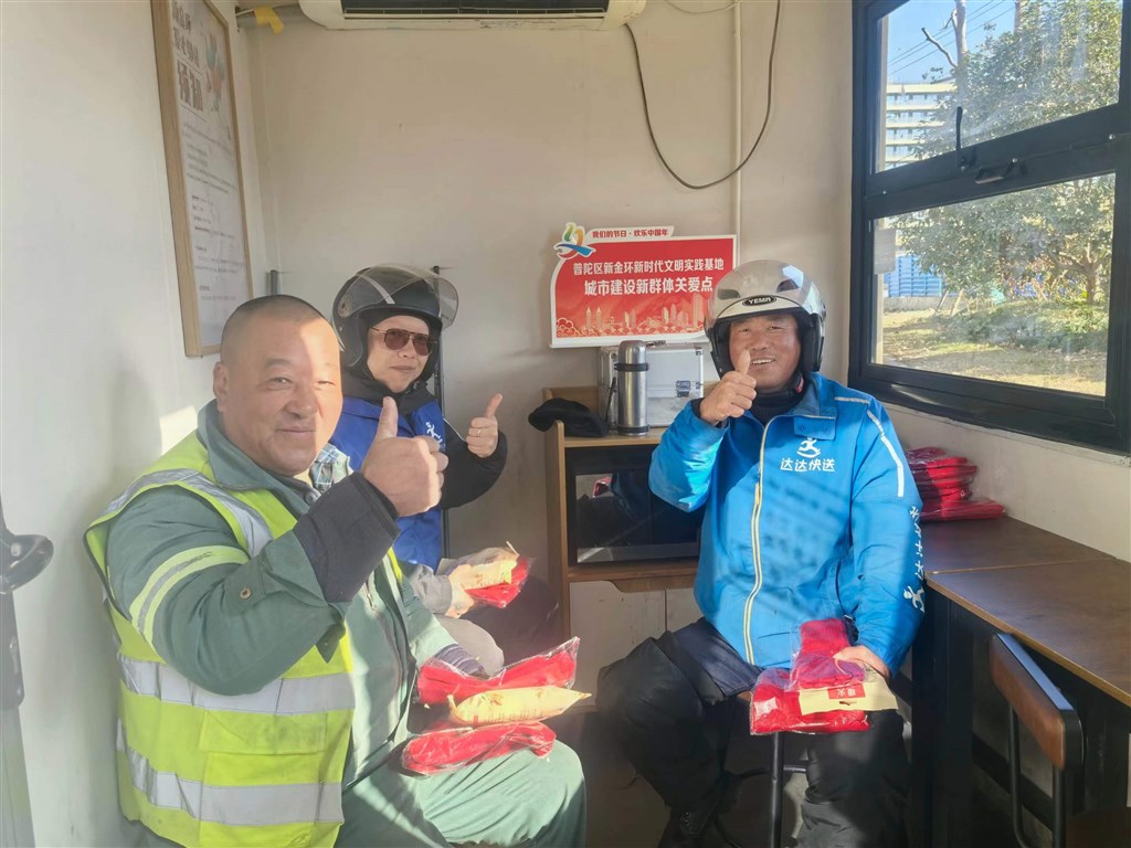 为全面践行人民城市理念,切实做好城市建设新群体关爱工作,在春节来临之际,普陀区新时代文明实践中心依托辖区新时代文明实践特色阵地设置了4个“城市建设新群体关爱点”积极开展“冬日暖阳·新就业群体关爱行动”,将温暖关怀传递给快递外卖小哥、户外劳动者等新就业群体,增强他们的获得感、幸福感、安全感。本次活动也是普陀区“我们的节日·欢乐中国年”系列活动。