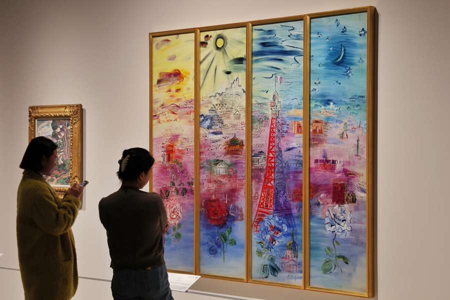 观众在欣赏拉乌尔•杜菲作品《巴黎》。