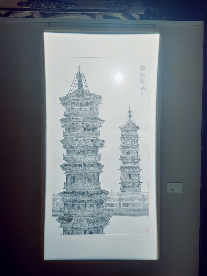 十方画院与嘉定南翔双塔毗邻,青年画家田佳佳绘《南翔双塔》