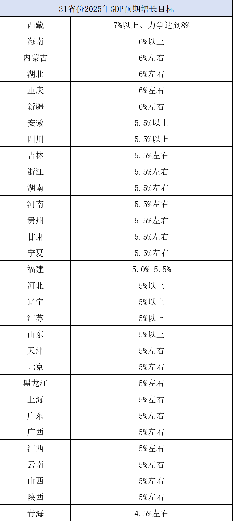 31省份2025年GDP预期增长目标公布:20省份在5%以上,最高7%以上